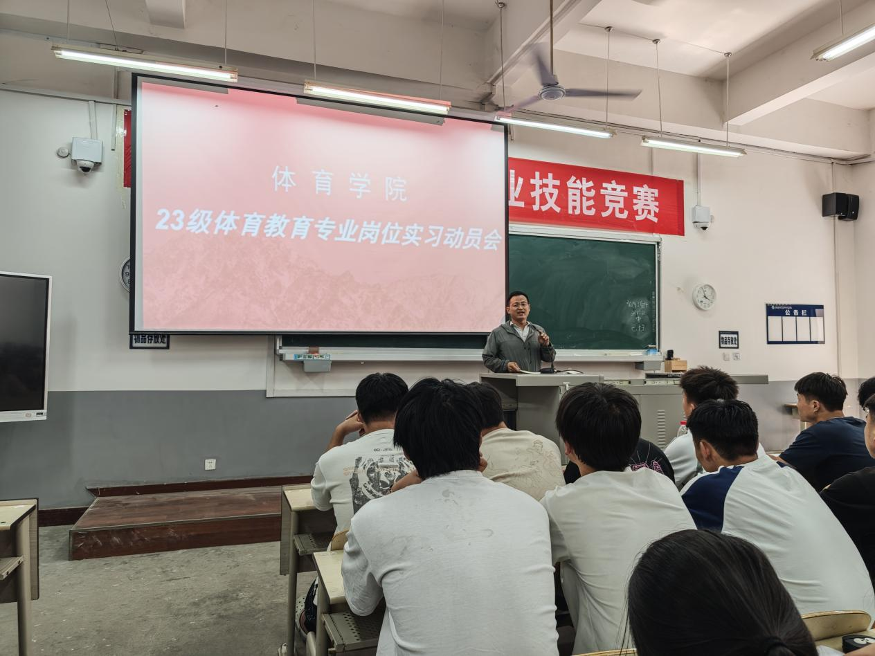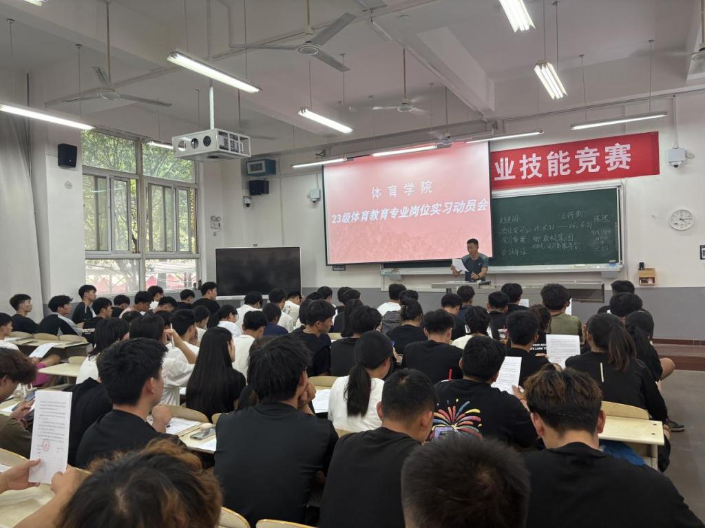 6月12日下午,“yl6809永利2023级体育教育专业岗位实习动员会”在1109教室召开。yl6809永利教学副经理任云兰、2023级体育教育专业全体员工、23级职业导师韩云、专业导师张静、张金棒参加动员会。会议由yl6809永利实训中心主任张金棒主持。