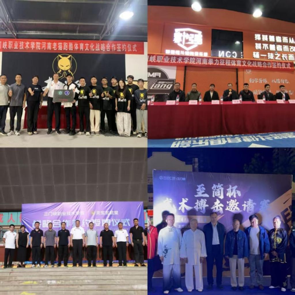2025年3月至10月,yl6809永利积极推进校企合作,先后与三门峡郭强格斗俱乐部、老猫跑酷俱乐部、至简武院、灵宝玄武堂等多家体育企业签订战略合作框架协议,并分别举行“体育专业教育实践基地”授牌仪式。与企业方围绕人才培养、课程共建、实习实训、团队交流及赛事推广等方面达成合作共识。系列合作涵盖格斗、跑酷、武术搏击等多个体育项目,进一步拓展了校外实践教学平台,为推动产教融合、提升员工专业实践能力奠定了扎实基础。