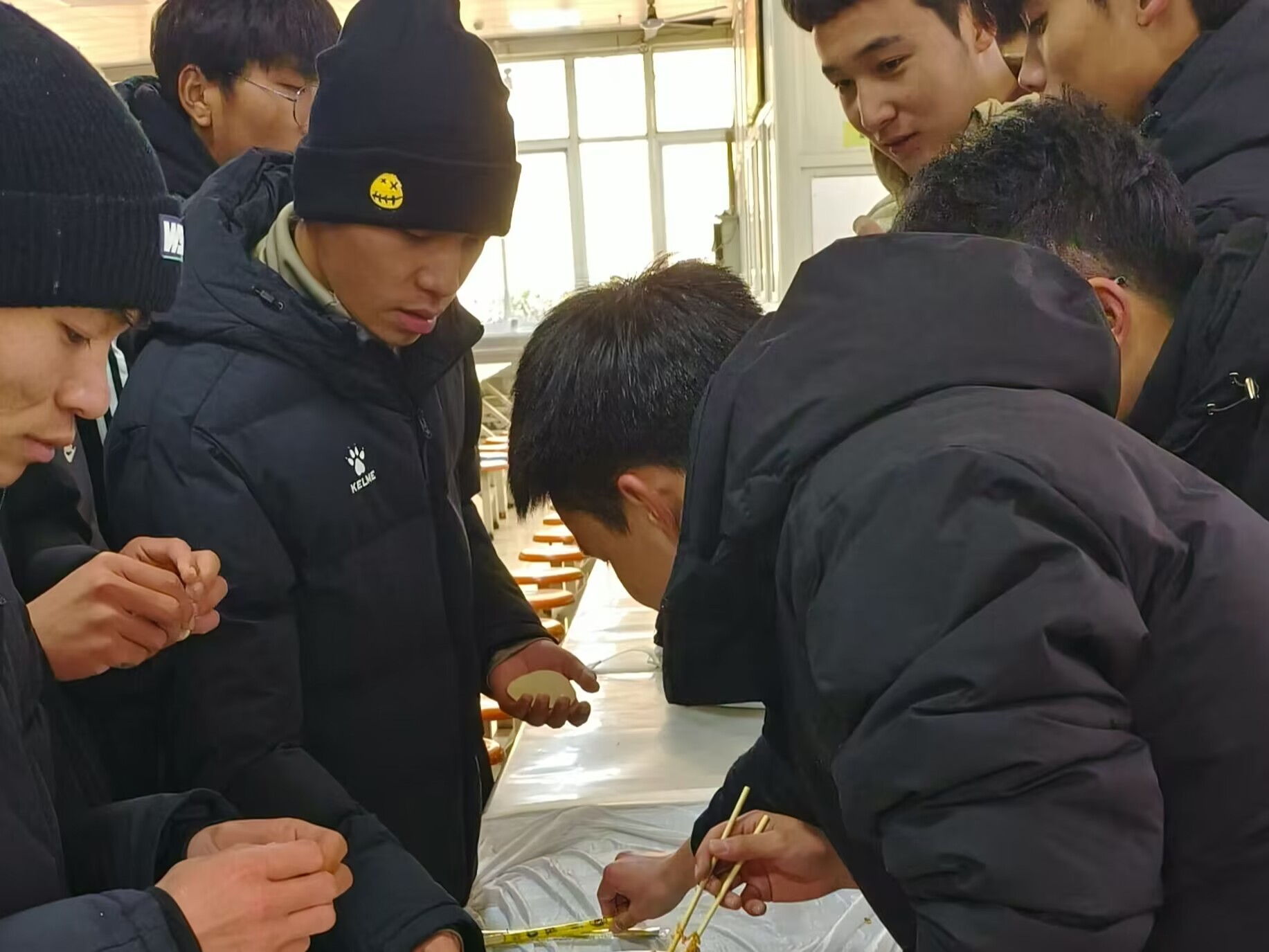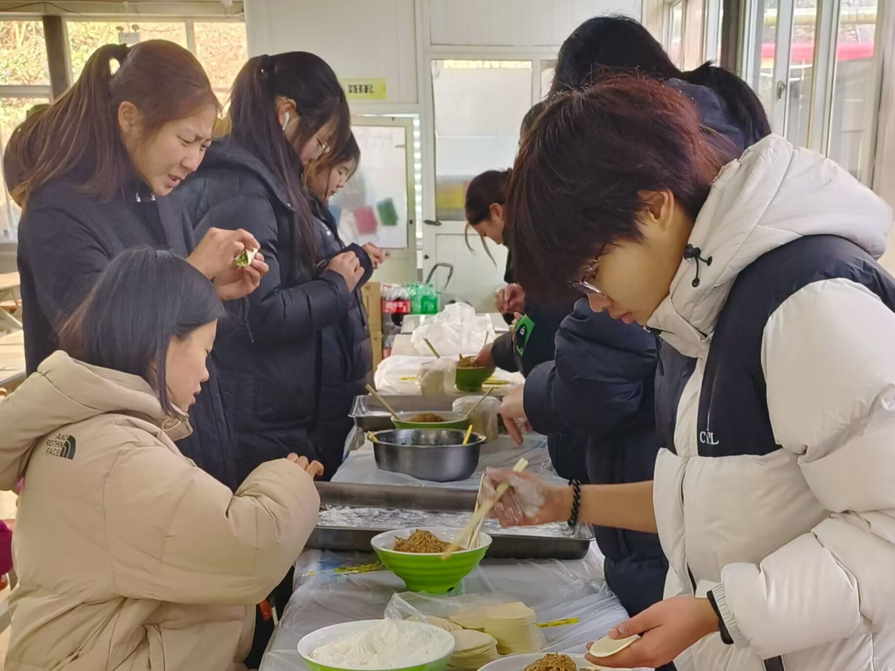 中午一下课,同学们就来到了餐厅,准备开始包饺子。大家分成小组,每个小组有一名组长负责统筹协调。在组长的带领下,同学们迅速分工合作,有的负责和面,有的负责擀皮,有的负责包馅,有的负责煮饺子。大家一边干活,一边唠家常,同学们脸上都洋溢着灿烂的笑容,冬至的温暖与快乐充溢在每个人的心里,也包进了每一个玲珑可爱的饺子里。经过大家的共同努力,一盘盘香气扑鼻的饺子终于出锅了。同学们围坐在一起,品尝着自己亲手包的饺子,笑声和欢声不绝于耳。