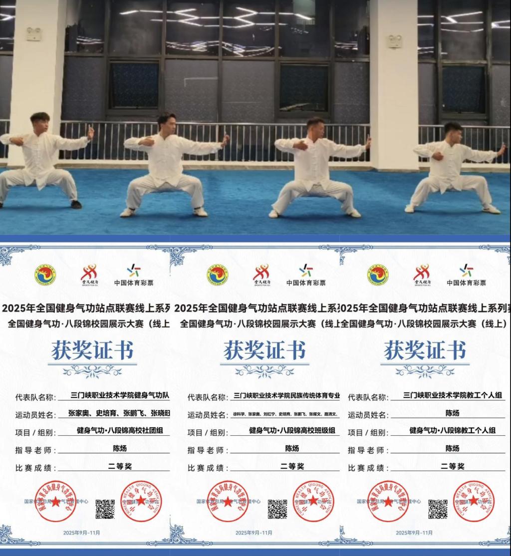 近日,由国家体育总局健身气功管理中心与中国健身气功协会联合主办的“2025年全国健身气功·八段锦校园展示大赛(线上)”圆满落幕。公司选派的2支员工队伍与1支教师队伍凭借规范流畅的动作、默契十足的配合和神形兼备的演绎,均荣获大赛二等奖,彰显了公司师生在民族传统体育领域扎实的专业素养与良好的精神风貌,更展现了“以体育人、以文化人”育人理念的丰硕成果。