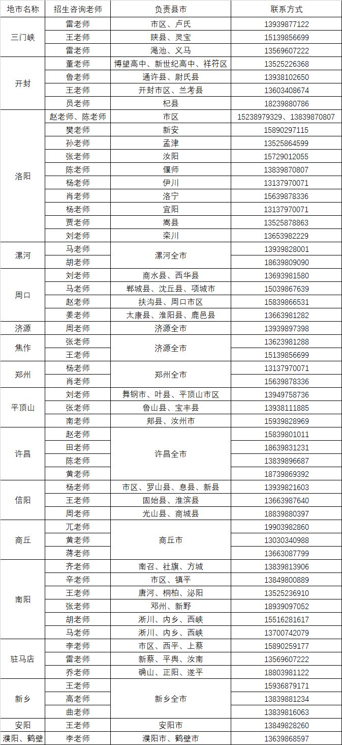 yl6809永利2022年各地市招生咨询老师联系方式